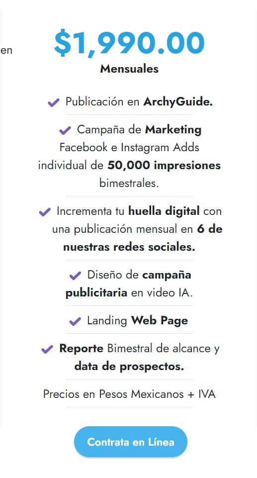 Incluye una campaña de Marketing en Redes Sociales con un alcance de 50,000 impresiones.
