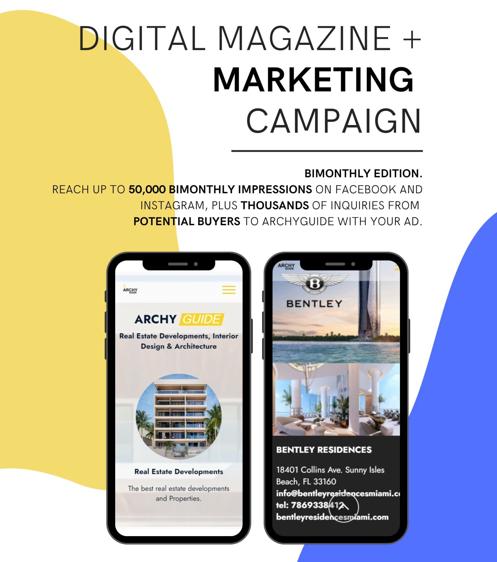 "ArchyGuide is not just a marketing campaign that sends advertising to a targeted market segment to generate interest, or an exhibition with a limited audience. In addition to its own marketing campaigns and those we create for each advertiser, ArchyGuide is a portal where anyone looking to invest in a development knows they will find the best opportunities in the city they are searching for. A marketing campaign seeks to find buyers, while ArchyGuide attracts them by being a consultation portal for Real Estate Developments, Interior Design, and Architecture."